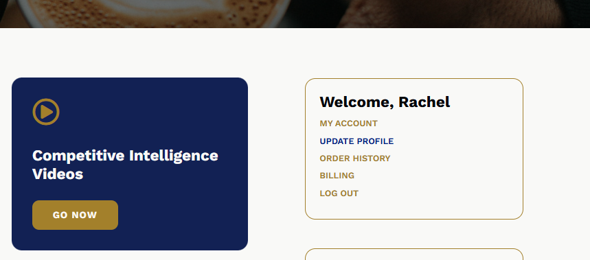 Then from the dashboard, you will see a box on the page that says "Welcome, [your first name]" with your account options. Click Update Profile: